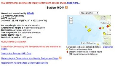 An example of the NDBC pages and information displayed for each Data Buoy, is shown below.