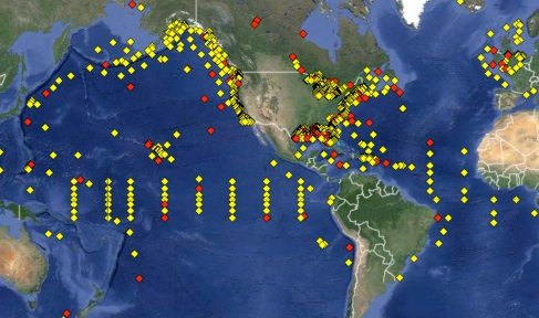 To view data samples from currently deployed data buoys worldwide, click on the image to the left to access the NOAA, NDBC (National Data Buoy Center) Worldwide Data Buoy Network portal. This link will take you directly to the chart of buoys seen on the left. Simply zoom in to any region you choose and click on any buoy to view the latest data received, from that buoy. Clicking the X, closes the buoy data window and returns you to the buoy chart, to choose another buoy or exit.